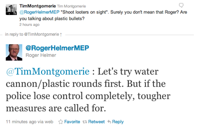 Tory MEP Roger Helmer's preferred option for dealing with riots:I told you the Right were going mental.